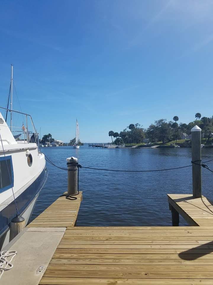 The plan was to stay overnight at one of the Jacksonville free docks, either at Jim King Park or on Sisters Creek. No space at Jim King so we stayed at the latter dock around the bend. A few boats were already tied to the dock and while they came to help and grab a line, it is the first time there were NoHandshakes but ElbowBumps.