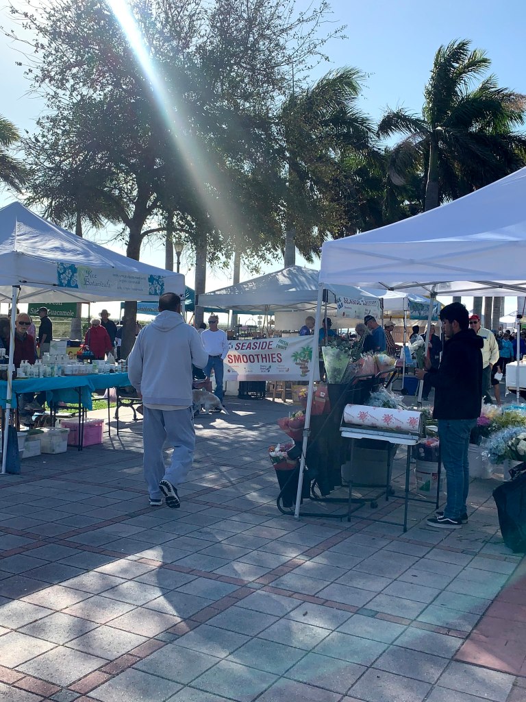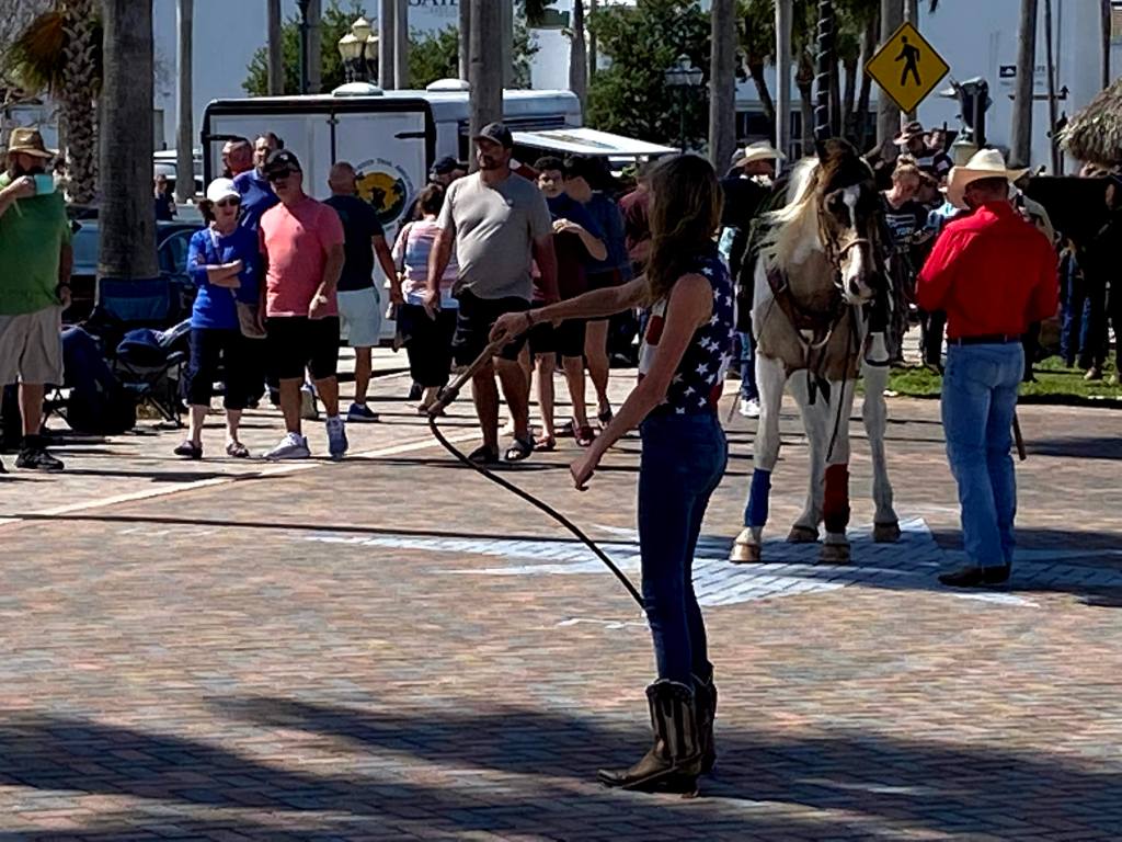 The Farmers Market on Saturday was terrific. It was much larger than any other one we visited along the loop. Lots of vendors, plenty of fresh produce and some interesting “gourmet” items, even for Kodey. Obviously we did some shopping. In addition to the market, we viewed a simulated cattle drive, the annual Cracker Trail Riders Parade where over 100 horseback riders travel the historic cattle drive route through Downtown Fort Pierce. There was whip cracking, tall tale telling, and horse petting, by the Marina, through the Farmers Market, and ended at Cobb’s Landing.