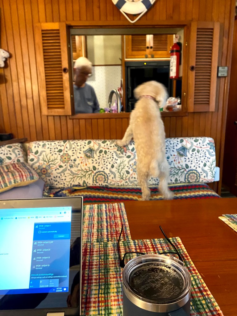 For now, we are both doing lots of reading. Good thing I have three library cards and we can check out multiple ebooks for each of us. Our usual visit to the local library to find used books is not possible any longer. However, with the Libby app, we have plenty of choices. To offset some of our reading, we are fortunate that the marina has excellent WiFi and we are able to connect both the TV and Amazon Echo so we have access for updates on COVID-19 and Governor Cuomo’s daily reports and music when we want to turn the TV off.