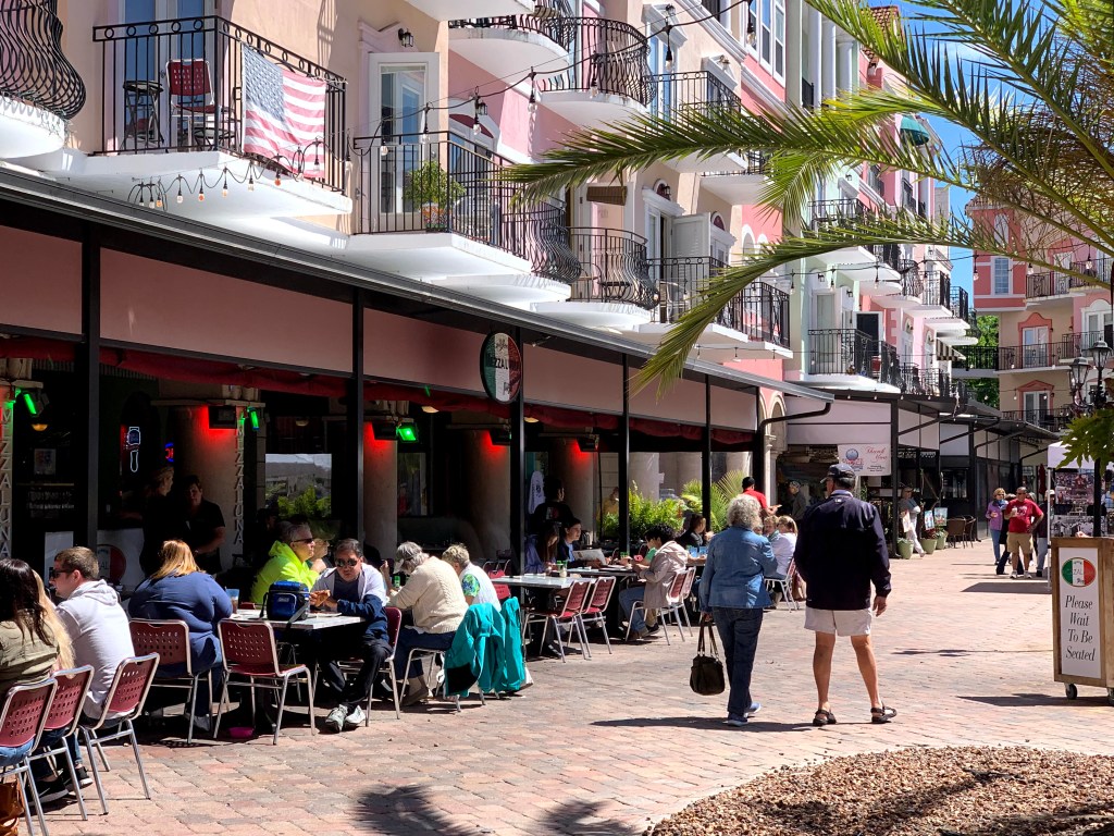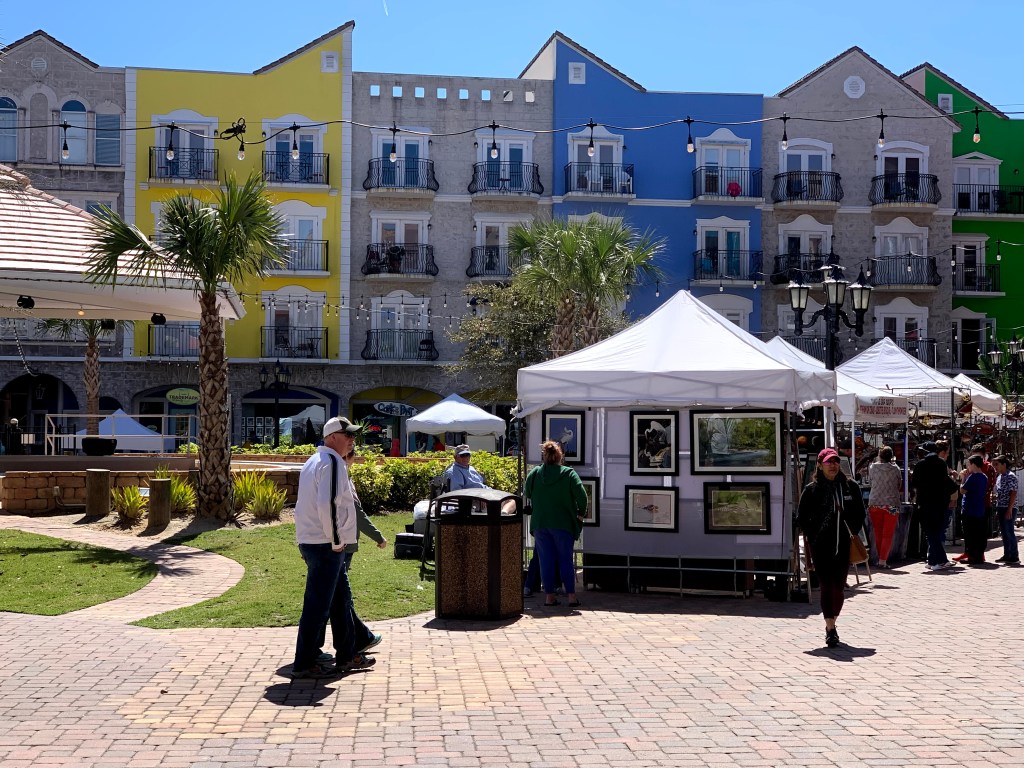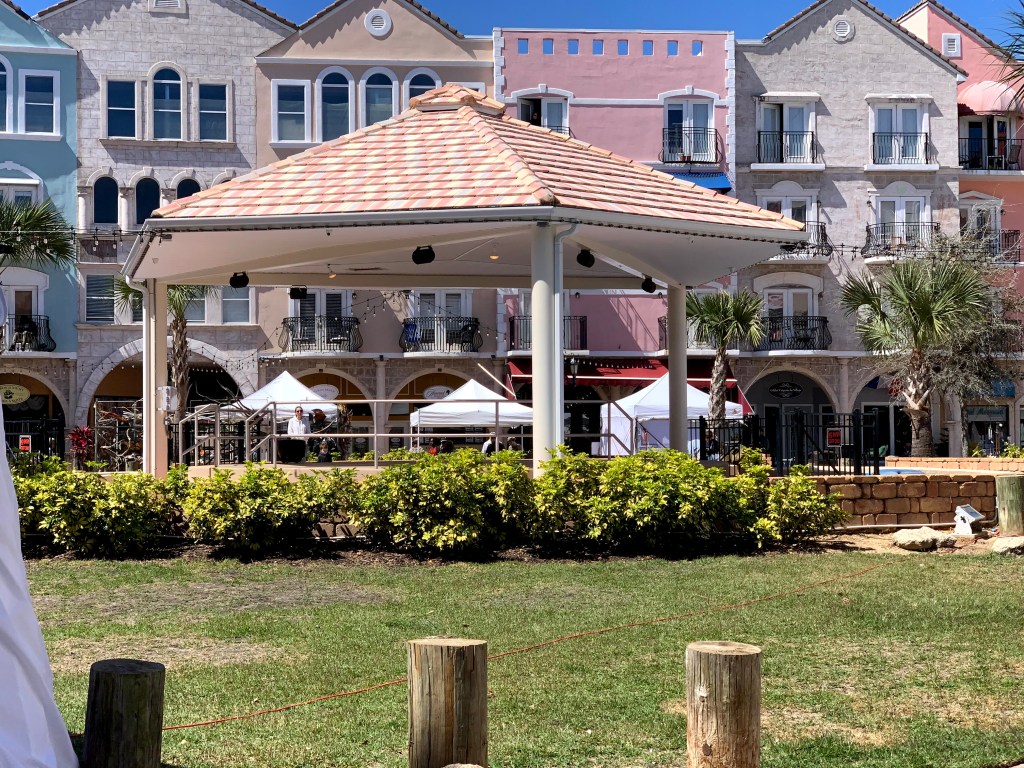 The nearby town within walking distance was not the usual local town but the EuropeanVillage, a quaint and unique place with a great selection of restaurants and bars. It is designed like an Italian open-air piazza with shops and restaurants on the ground floor and colorful residential condos above. Vendors were set up under small tents in the piazza, some selling merchandise and some selling their own crafts. An enjoyable walk with lots of activity and lively music for entertainment.