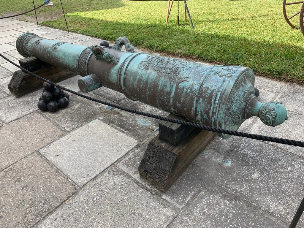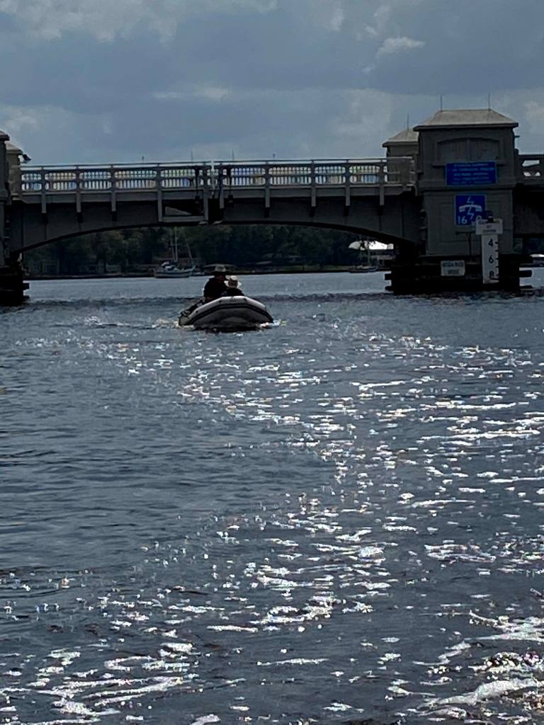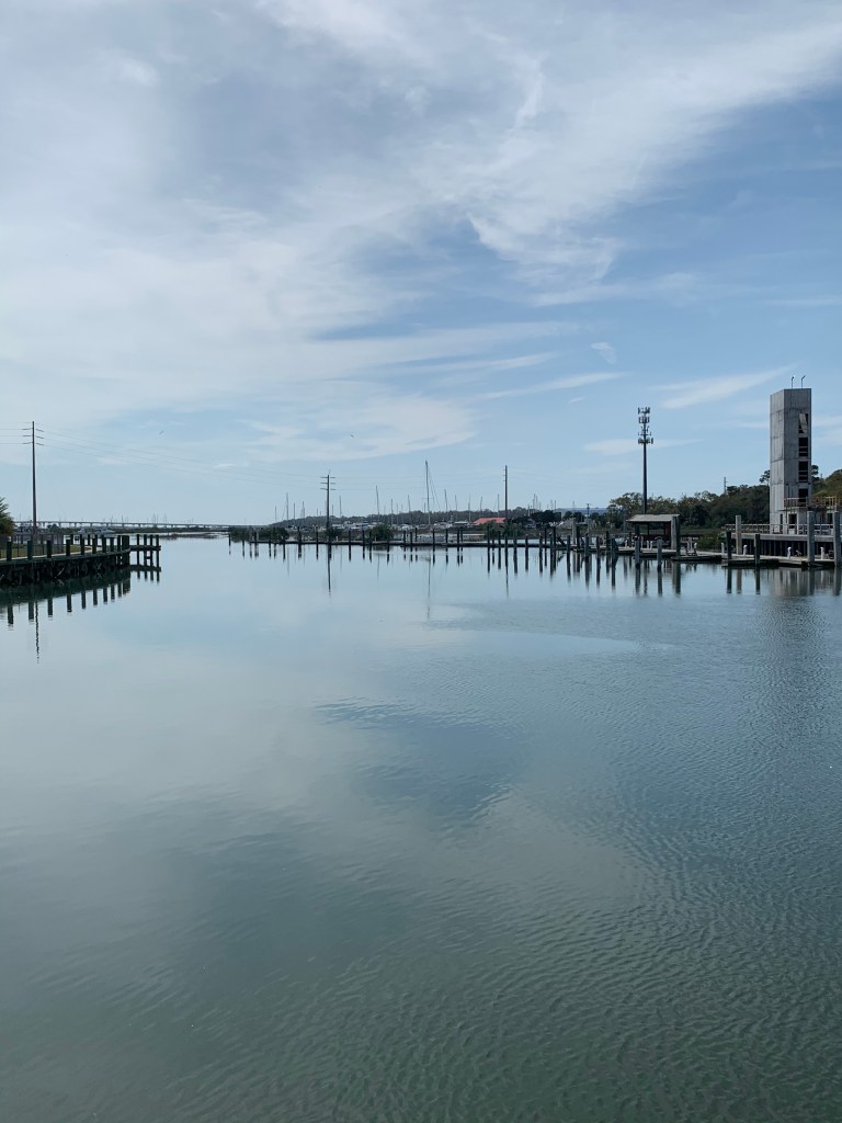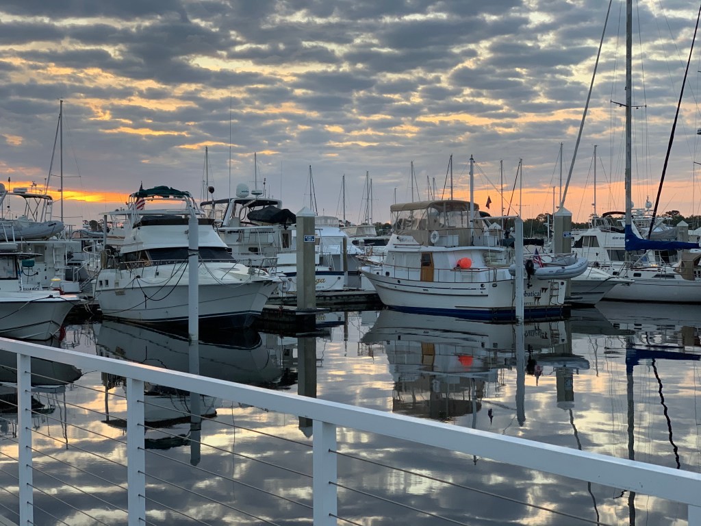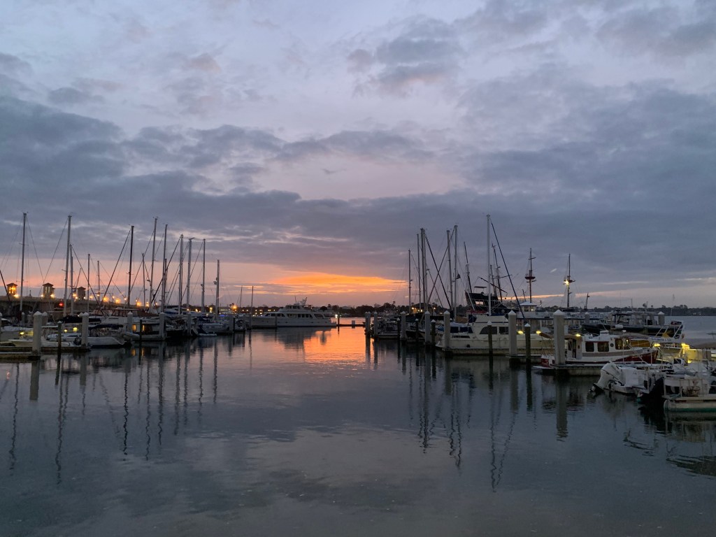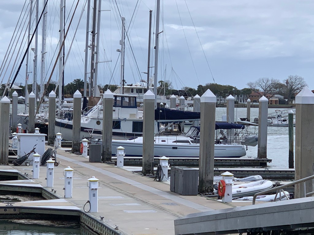 Sunday brought calmer winds so we left and arrived in St Augustine without issue until we tried to dock. Peter prefers to dock stern in and St Augustine had long fingers so if necessary we would be able to go bow in and still get off the boat. While the wind wasn’t bad, the current was very strong so bow in was the easiest. Even with dock hands on the finger to catch lines, it was not an easy docking – forward gear issue continues. We were happy to get settled, knowing that we would be staying put for a week.