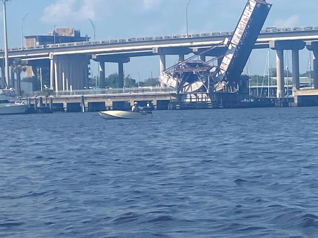 We left early on Saturday morning to cross the lake and travel to Stuart to RiverWatch Marina since we were unable to get a slip at Indian Town. The weather seemed OK with predictions for a light chop on the lake. We went back through the Clewiston lock into the lake and started our day’s journey. The first hour was good but in the second hour the wind and waves increased, more than any of the weather apps predicted, so it was not pleasant. It did get better for a bit of time but then the wind picked up again. We arrived at the Port Mayaca lock at the other end of the lake and were advised that the lock was open (we had heard that this was a possibility because of the level of the lake) and received permission to come through. According to the information we received at Looper Palooza, the lock is normally a drop of 1′. We traveled along the St Lucie Canal and arrived at the St Lucie Lock, a 14.5′ drop. We waited about 20 minutes for the lock to be ready and all went fine. After the experience at Ortona, I was concerned about the locks since we have never experienced locks with the doors partially open. We arrived at RiverWatch (construction underway so limited services) before heading to Fort Pierce, one of the recommended stops along the east coast.