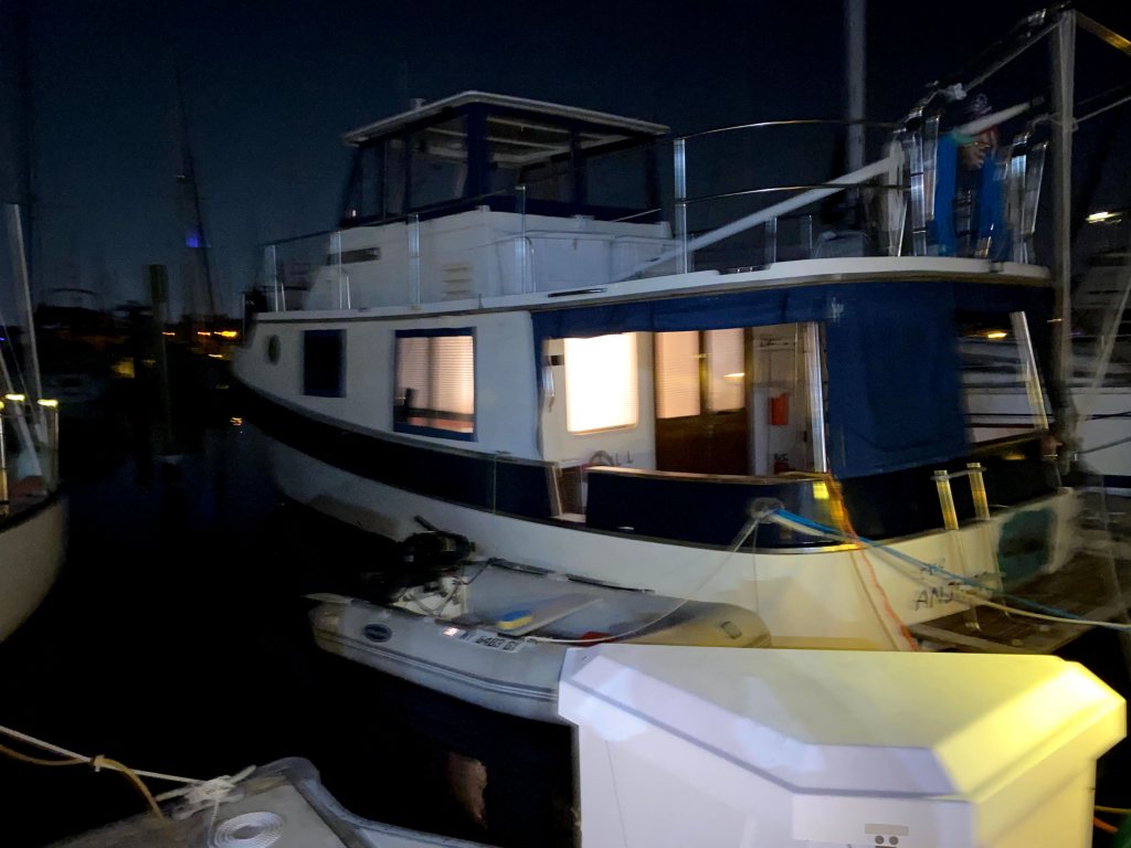 Arrived in New Smyrna Beach and after we docked, the dockmaster told us that she had a Manatee years ago. In fact, she had Jim Krogen’s Manatee named Sumo. Told her that our boat had been Skipper Bob’s so we shared a few stories about our “famous” boats.