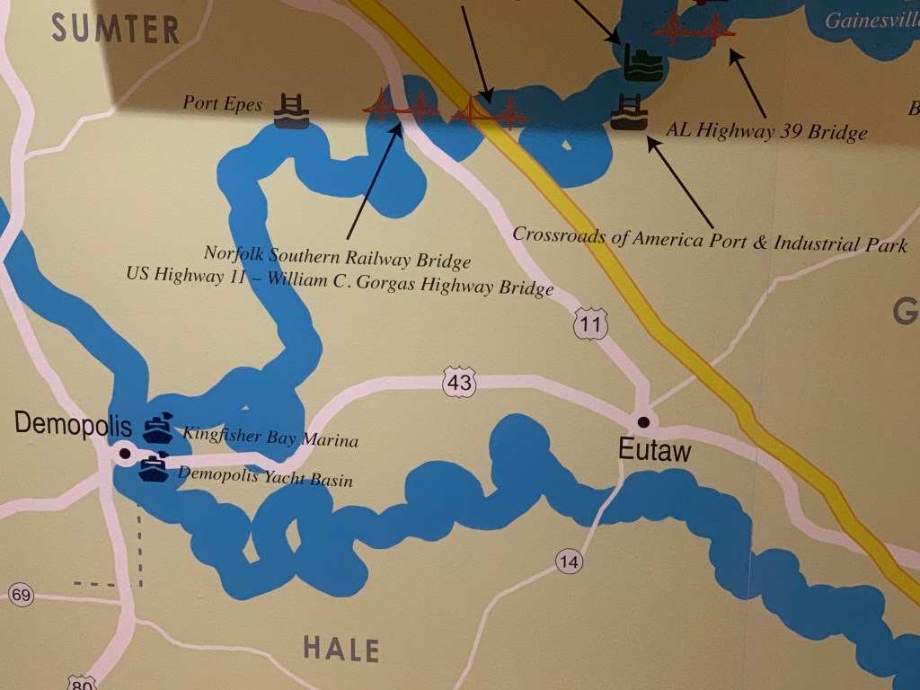 In addition to wanting to move, we had also hoped to be ahead of some of the crowds of boats coming down the river. Spaces at marinas tend to shrink with too many boats traveling at the same time. From Demopolis, there is really only one place to stop and tie up and it is not really a marina. It is another long dock similar to Hoppies and Riverwalk on the Mississippi. Places that you would prefer to skip but the only place to stop unless you want to anchor on the side of the river. On the other hand, these are places that are “looper legends” so you almost feel compelled to stay there even though you would not miss anything if you opted to skip them.