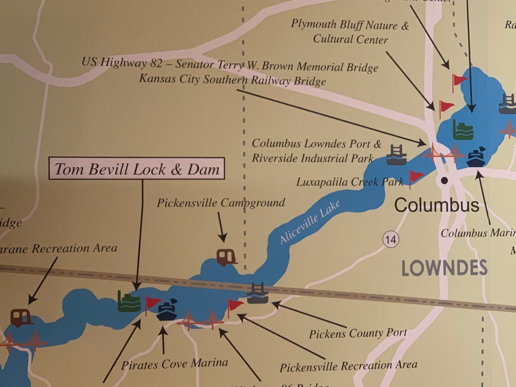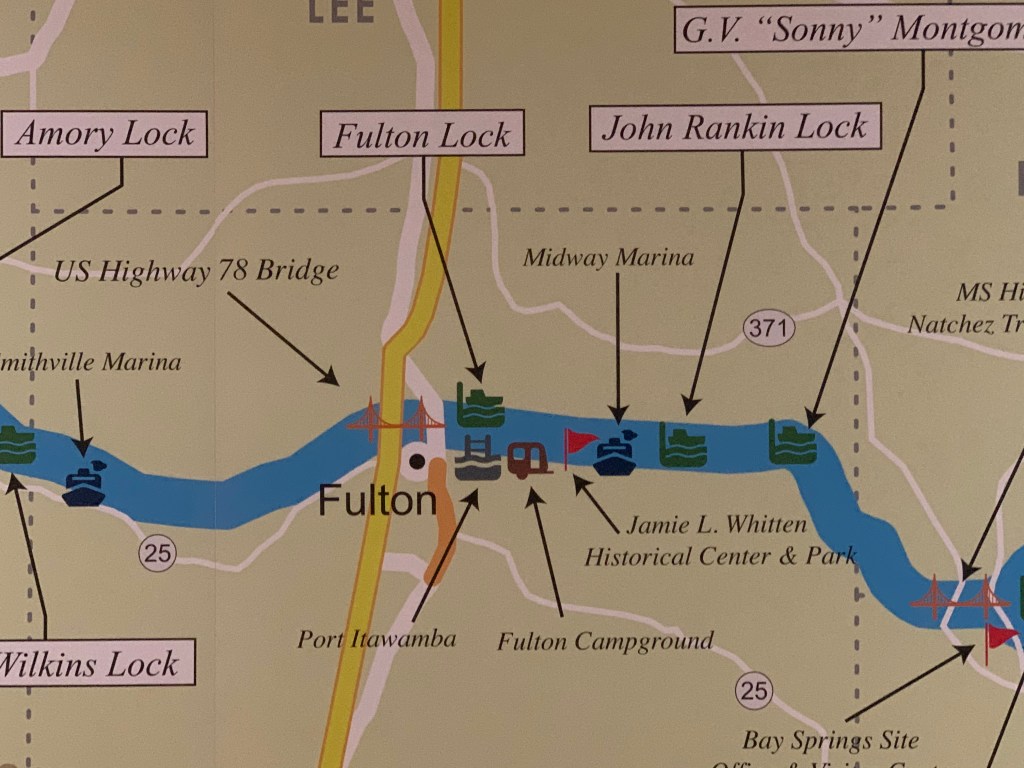 The rain cleared and we left Columbus on Tuesday morning and headed to Sumter Recreation Area to anchor. The anchorage was not as wide as we anticipated so once again we rafted. Later in the day, another boat from Columbus who left later in the morning arrived at Sumter and anchored in front of us. We all planned to leave the next morning, lock through the Heflin Lock and head to Demopolis for a few days.
