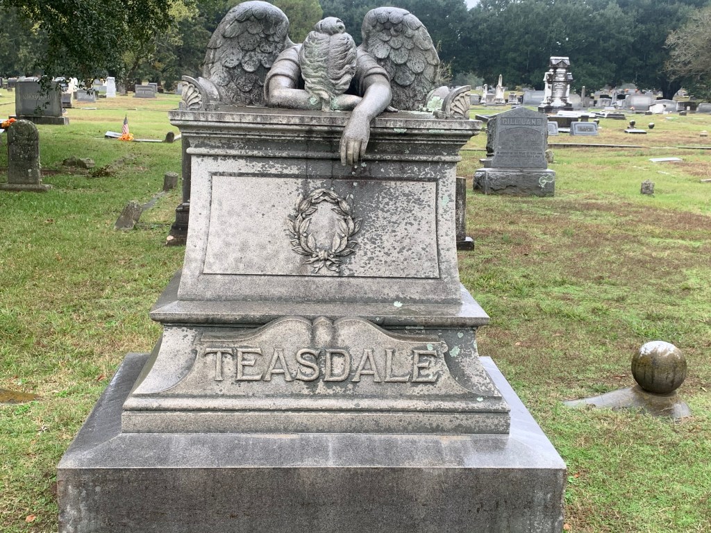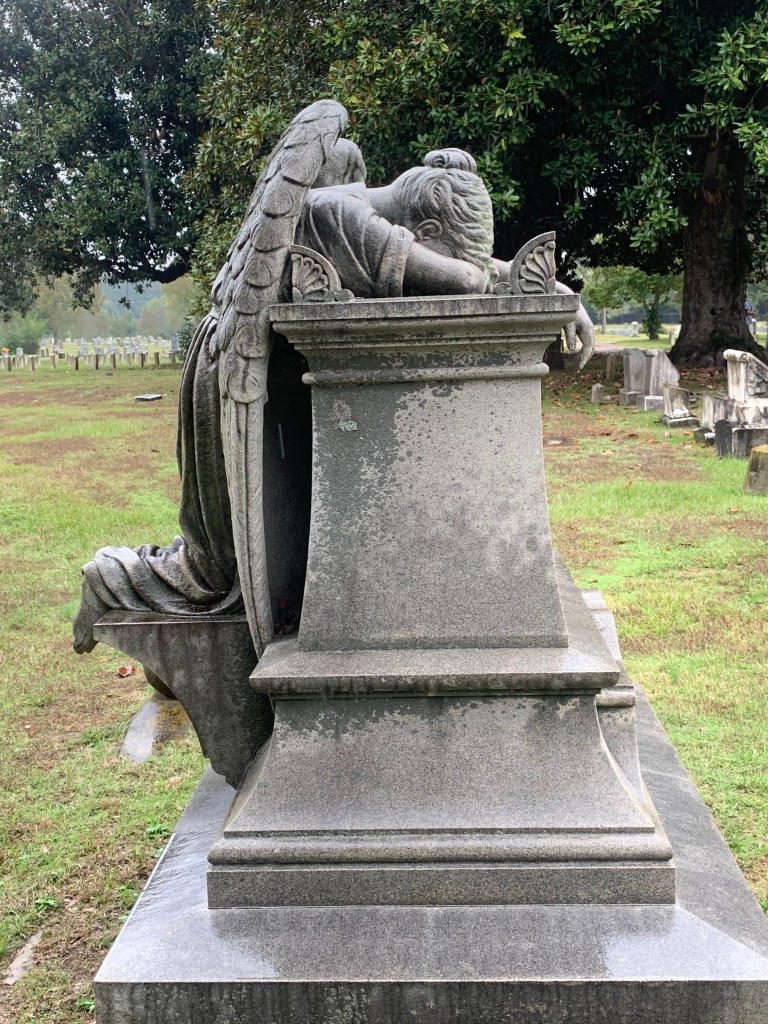 Columbus Marina had two courtesy vehicles, the usual van and a 5-seat pickup. Since there were so many of us, we needed to sign up in advance so that we would have a vehicle to get us into town to do some exploring, shopping and lunch or dinner. We visited the Tennessee Williams Home & Welcome Center and the Tennessee-Tombigbee Waterway Transportation Museum. We enjoyed touring the house were Tennessee Williams lived for the first three years of his life and the history of the structure. When we arrived at the Transportation Museum, although it was listed as “Open”, it was closed for the day as they were updating their exhibits. They did let us into the lobby and we took a few photos that clearly demonstrates the winding river. We also rode around town and viewed the “The W” which was the first public college for women in the US, later known as Mississippi University for Women. Another stop we made was the Friendship Cemetery that was founded in 1849. It is the site of the first Decoration Day in 1866 that led to the modern Memorial Day celebration. The cemetery is the final resting place of four Confederate Generals and over 2,000 confederate soldiers and also some union soldiers. One headstone that has become fairly famous is the weeping Angel of Grief as she watches over the grave of one of the town’s beloved Baptist pastors who died in 1891.