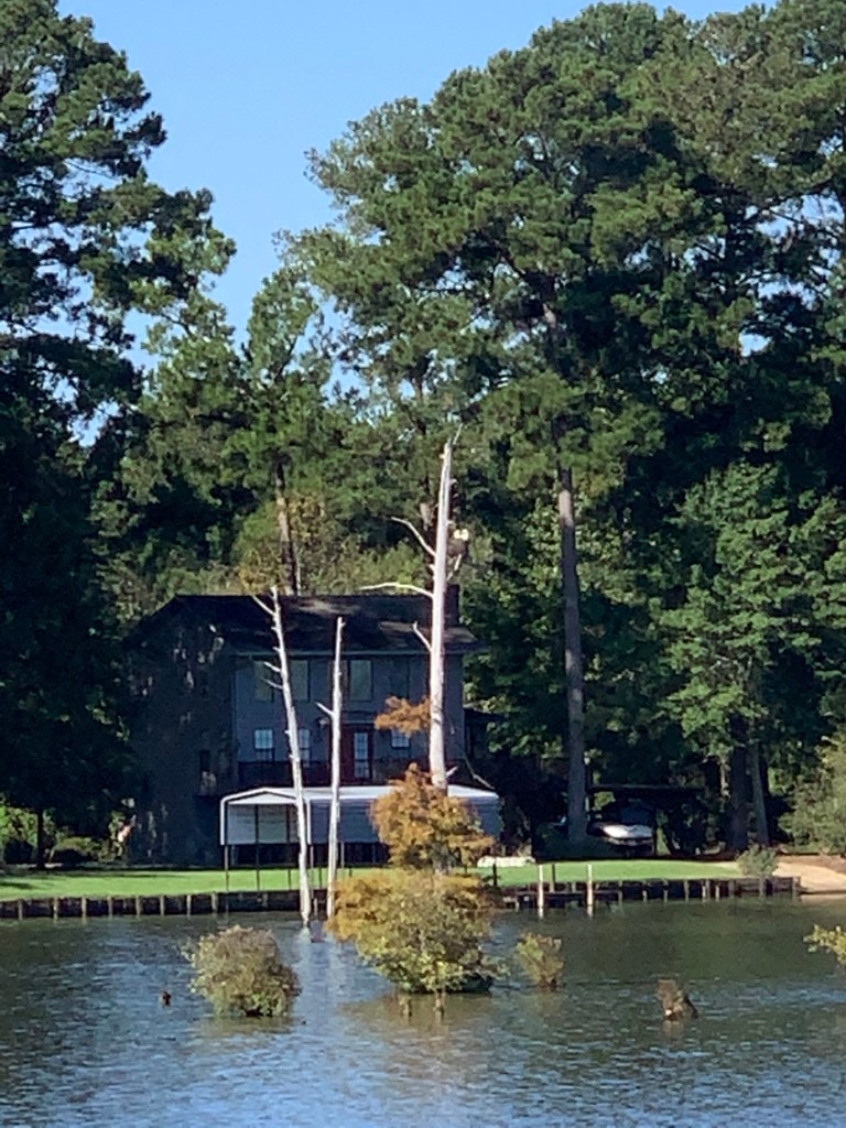 We all entered the lock and traveled in single file carefully navigating around the debris. With the difference in speed, we were broken into three separate groups as we traveled to Bobby’s. The boats in the first group would radio back about conditions and when they saw large trees or telephone poles in the water.