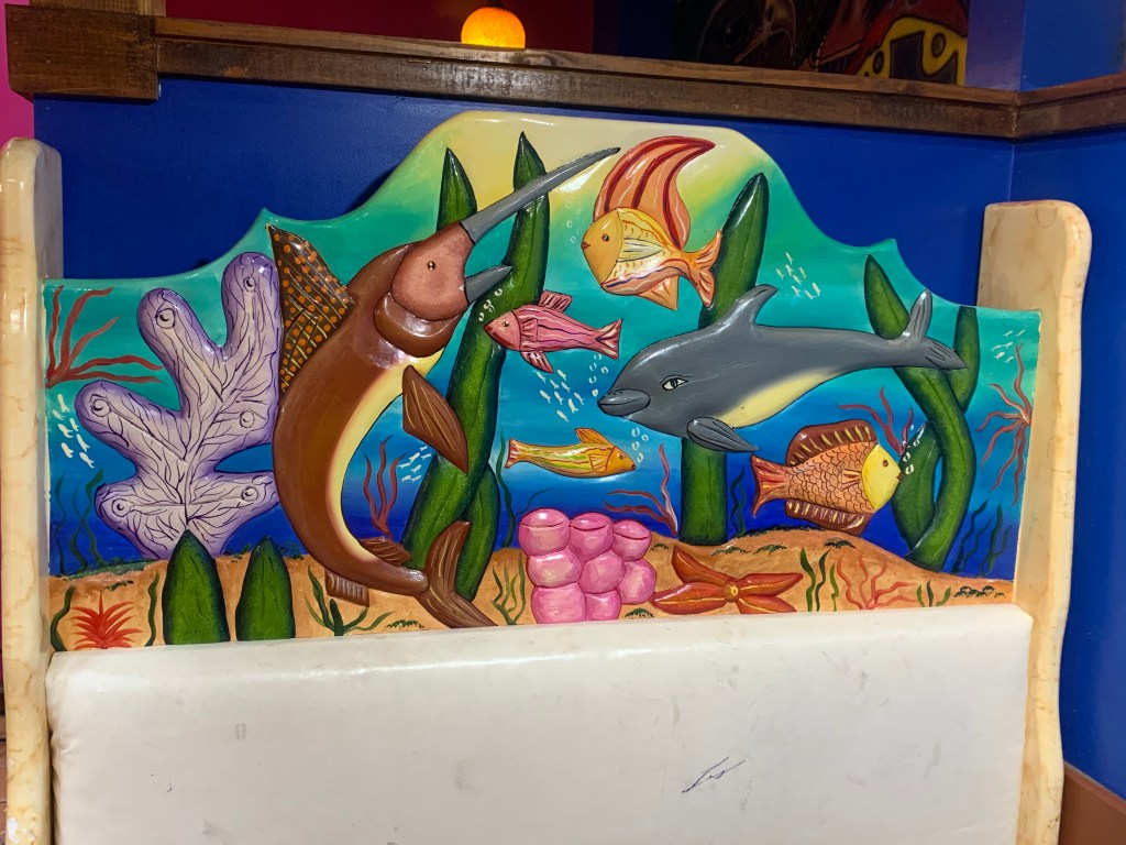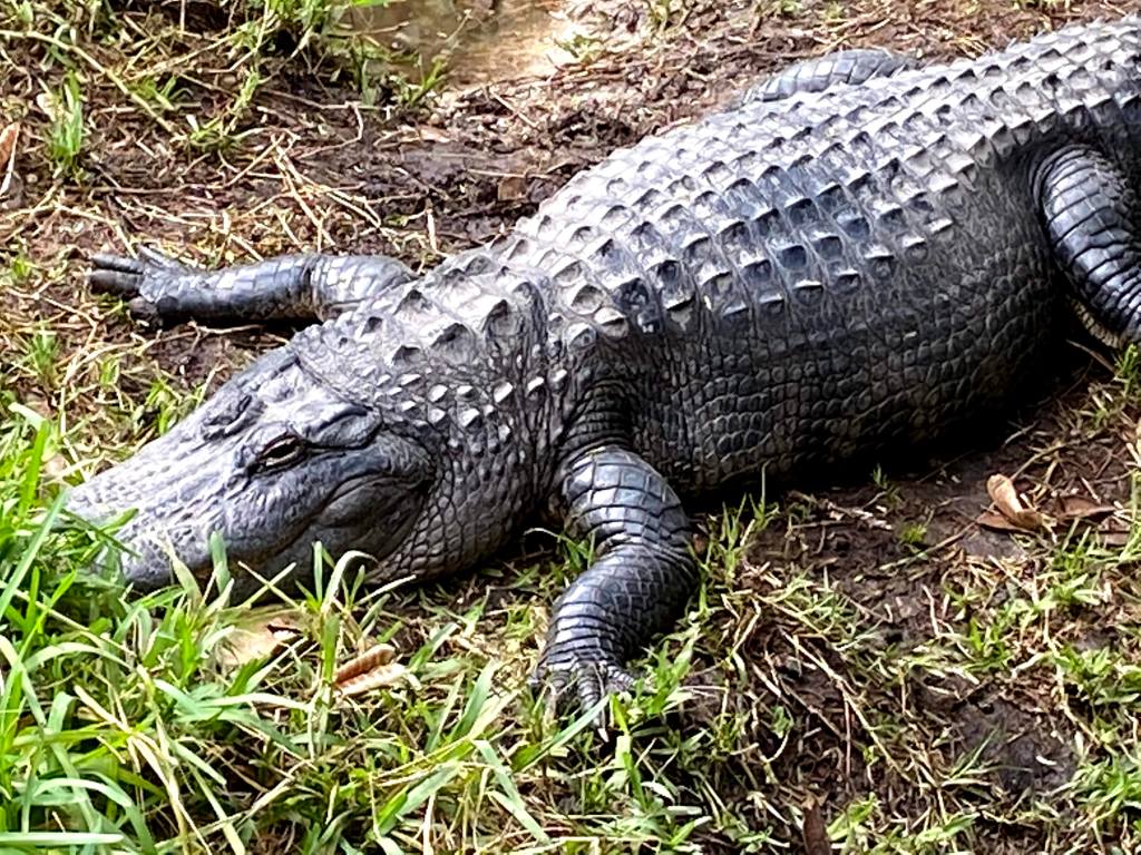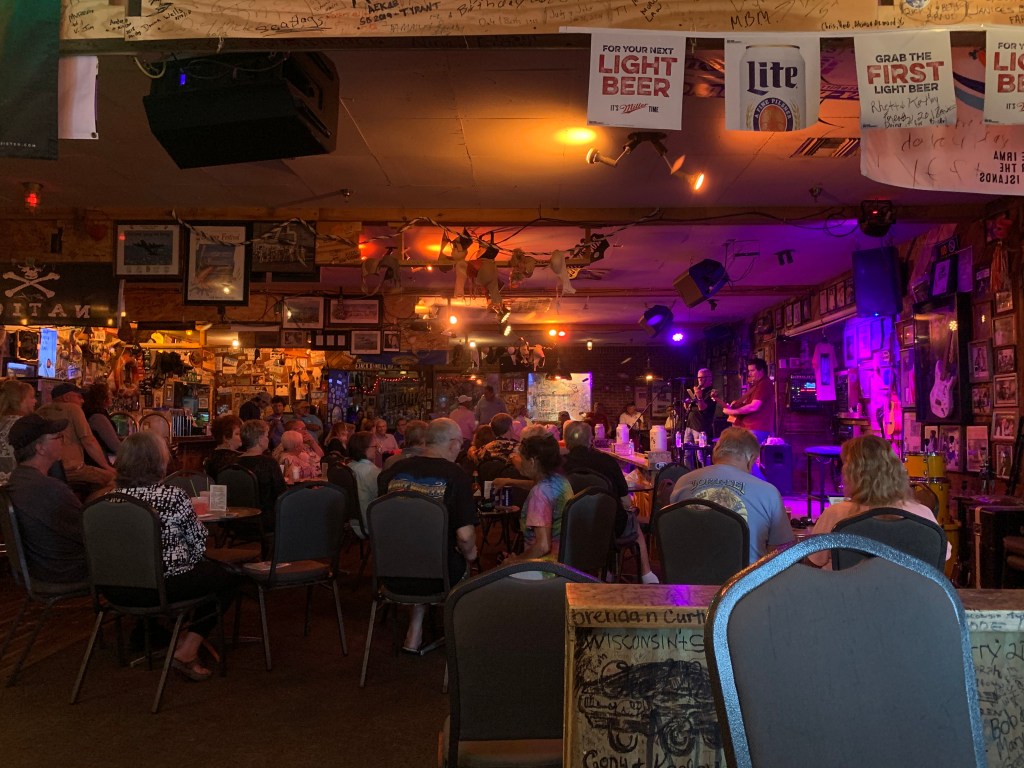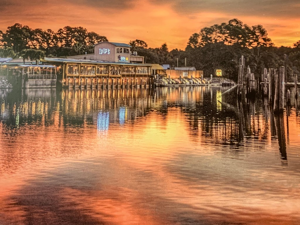 While we were at The Wharf we took an Uber to Lulu’s in Gulf Shores. Lulu’s is owned by Lucy Buffet, Jimmy Buffet’s sister and is one of the recommended restaurants in the area. Peter and I had been to Lulu’s in Destin, FL during Spring Break when we had a family vacation in Miramar Beach, FL. The vibe and food were very similar and we had a nice dinner. Another tourist activity was to visit FloraBama a huge place with multiple bars and restaurants. They even hold a non-denominational service every Sunday – the basic premise is to be a good person and treat others well. This is not your usual Sunday service. The bars are open and people bring their drinks to the service. There is live music in various bars and we also happened to be there at the beginning of an 11 day Songwriters Festival. The singer at one of the bars, Neil Dover, was good and of course sold copies of his albums but I looked him up on Apple Music and added a few of the songs we enjoyed to my library.