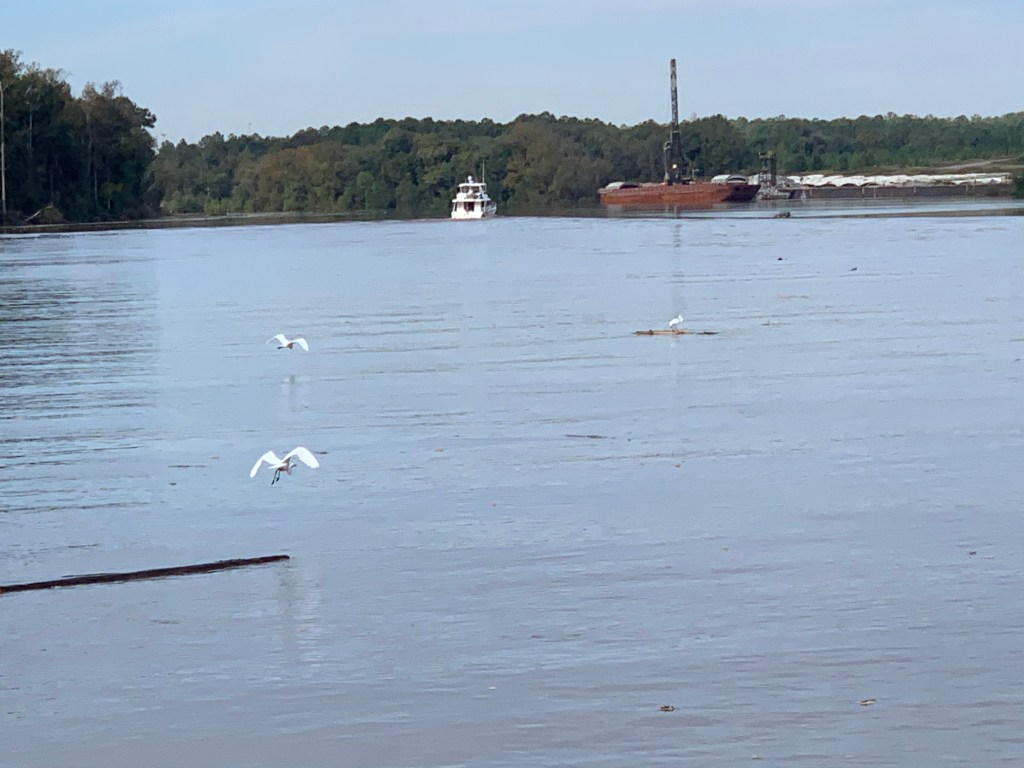 Seven boats left on Thursday even though the water levels were still high. Many of us decided to wait another day or two before leaving. We heard from the boats that left and they said there was much debris and you really needed to be very careful and slow down so that you could navigate around the logs. A few did not heed this warning as they usually travel faster and hit submerged logs and did damage to their running gear. As there are also no services on this stretch of the journey, they now need to get to Mobile for any repairs. They plan to continue and limp to Mobile.