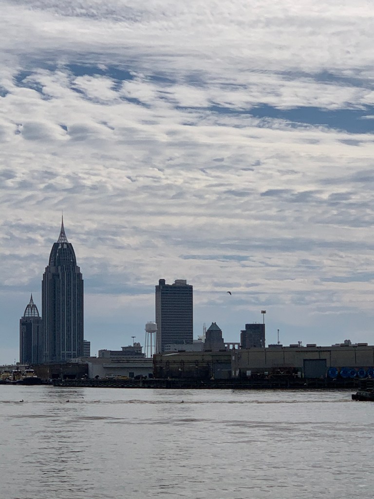 We were scheduled to leave The Wharf on Thursday and head to Pensacola but the weather prediction changed and it was going to rain so we stayed another day and will leave on Friday. We’re hoping that when we cross into Florida that we will have warmer weather. The past few days in Alabama have been cold 34-39 degrees. Peter told me we would be following the seasons and I would not be cold. That has not been the case.
