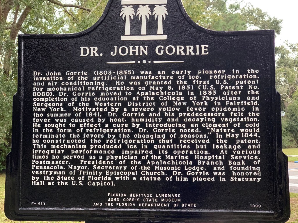 Apalachicola is an interesting fishing town. It is known as the oyster capital. Some of the fishing villages we have visited have reconstructed themselves into tourist towns and this is one of them. While there is still an active fishing industry, there are now a number of restaurants, various gift shops, and local history sites to visit. One little park we visited was dedicated to a physician, Dr. John Gorrie, who was an early pioneer in the invention of the artificial manufacture of ice, refrigeration, and air conditioning. He was granted the first U.S. patent for mechanical refrigeration in May 1851. His attempt to cool patients with yellow fever later became the basis for the ice industry and air conditioning.