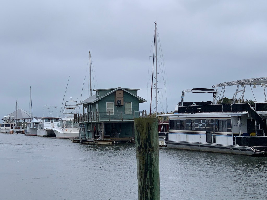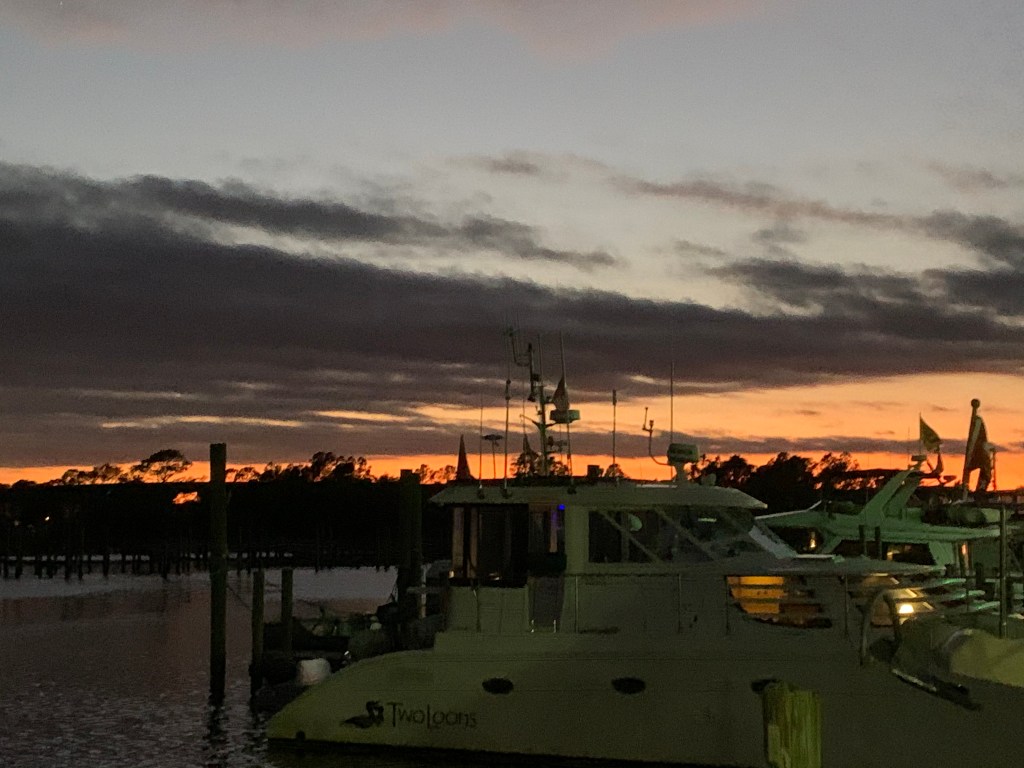 We left Lighthouse Marina as planned and arrived at Water Street Hotel Marina in Apalachicola later that afternoon. Traveling was not the best but there were times that the water was calm and peaceful. We were not able to outrun the cold front and it was only 29 degrees when we left. I did tell you we were in Florida, didn’t I? Wind varied but we were determined to get to our destination since crossing the Gulf of Mexico involves watching various weather windows/projections. Once again, rain was projected so we planned for two nights and double booked marinas for Saturday just in case we would be able to leave on Saturday.