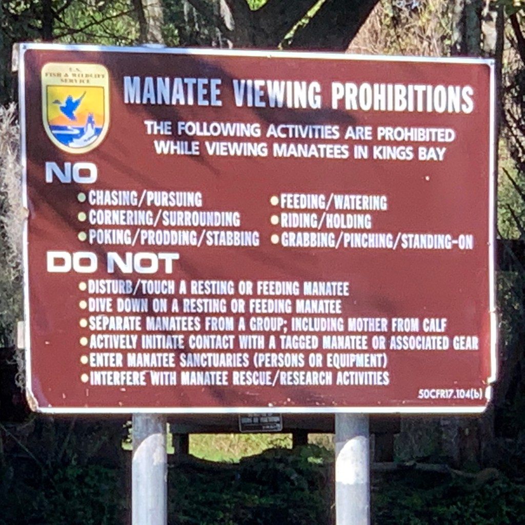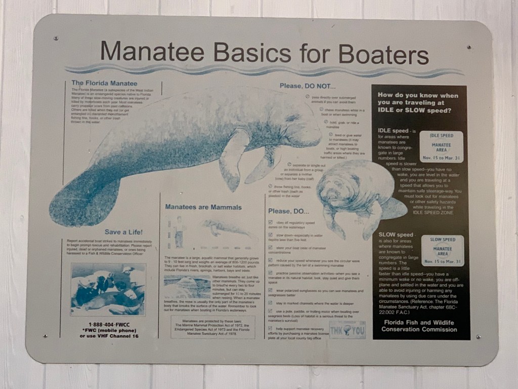 After a restful night, we left Cedar Key and traveled to Crystal River. We were excited to spend time there since it has a large resident population of manatees. Once we docked and had lunch, it was time to get into the dinghies to go deeper into the river to see the manatees. It was a fascinating experience. Not sure it beats the ongoing dolphin sightings – which never get old – but it comes very close. We probably should have stayed another day but I think we were all anxious to keep moving south. The weather was finally starting to warm up. Not the type of warmth we were expecting for Florida but at least we were above 40 degrees.