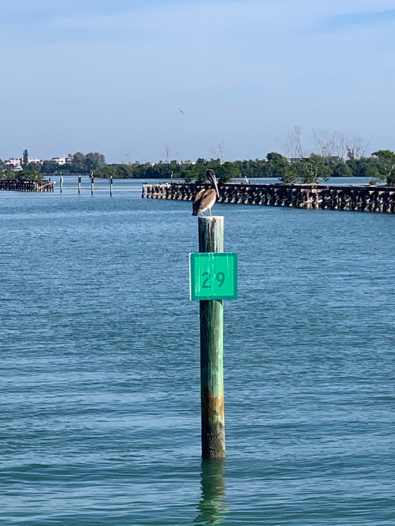 As predicted, Sunday was windy and not a good travel day.  It was, however, a good day to catch up on laundry and other various tasks.  We left on Monday so that we would have good water crossing Tampa Bay.  We decided that we really didn’t need to see any cities so skipped St. Petersburg and Tampa (both were really out of the way when making the way south anyway) and headed to Cortez, FL in Sarasota Bay just west of Bradenton.