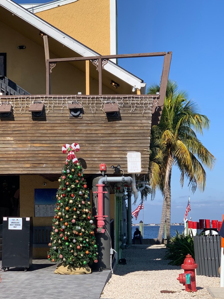 Another text was sent to our friends from the Peekskill Yacht Club who spend part of their winter in Punta Gorda/Port Charlotte. They have been following us on Nebo so knew we were in Punta Gorda but called me immediately when I sent them the text of the Christmas tree at Fishermen’s Village. Apparently they spend many days walking the docks and enjoying the harbor. We compared notes on the weather since it was quite chilly in upstate NY.