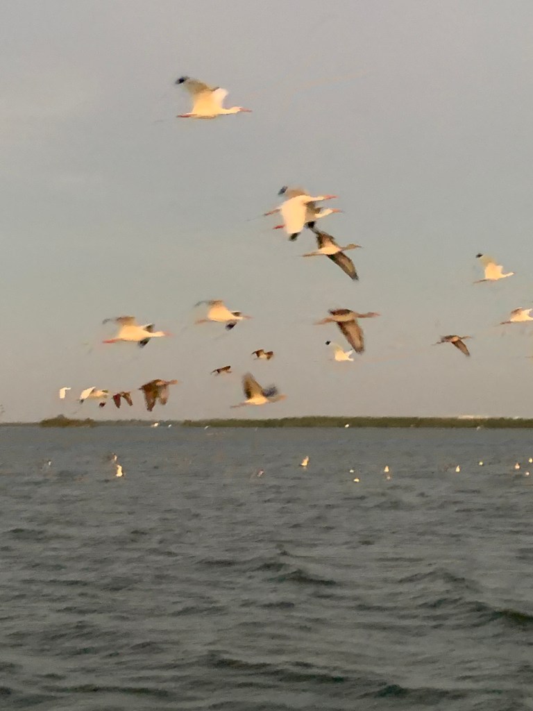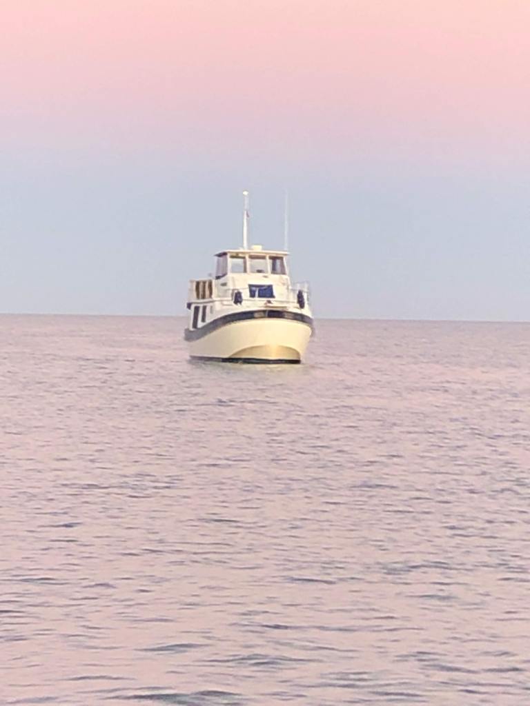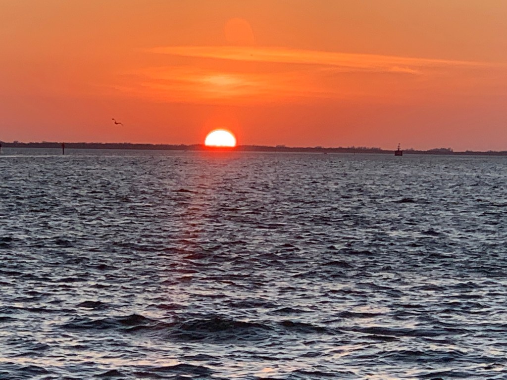Most loopers will stage themselves at Carrabelle until the weather forecast sounds good – no rain, low wind/wind gust and small waves. There were a number of boats waiting for almost a week when we arrived. We were fortunate that the next window for crossing was Sunday/Monday. Our flotilla left on Sunday afternoon to anchor in Alligator Bay to cut some of the travel time the next day. It would give us some wiggle room with the daylight. It is a known anchorage but it was not a comfortable night. We rocked and rolled all night and barely slept. Needless to say, everyone was awake the next morning to leave at daybreak.