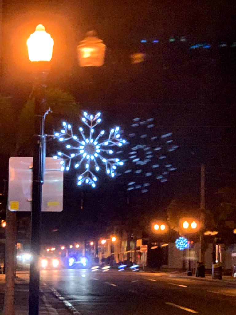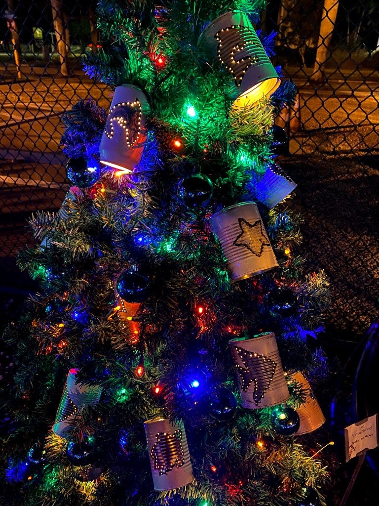 The town had a number of holiday activities planned this week including the town Christmas tree lighting with music, food vendors and other festivities. In addition, the Visual Art Center was having a Christmas craft fair that Terrie (Avalon) and I decided to check out. We left Peter and Richard back on the boats since we knew they had little interest. Lots of interesting crafts….if you weren’t living on a boat. However, I did find hand-made Christmas ornaments for our granddaughters since we add one to their collection each year. These were oval shaped balls with swirled paint and sparkles in pink and purple. Probably the first year that I purchased ornaments for them that were designed for children but not “kiddy”.