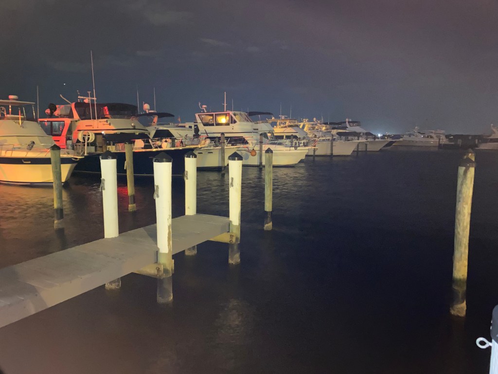 When we arrived at Bobby’s, it was a bit chaotic as to order and rafting. The two largest boats were on the dock and there was only about 30′ left for a smaller boat at the fuel dock. Boaters were trying to raft to others by size and if possible, run an electric line across to have power. After the first 8 boats got settled, there was limited space and the smallest boat was 36′. Bahama Voyager is 32′ but left and was searching for an anchorage. The boat is also too light to tie to the dock and have other larger boats raft off. Since we are a heavy 36′ boat we said we would try to squeeze on the dock as long as our side door was accessible to get off the boat. We got the final spot at the end of the dock, barely, but we docked, had power and had two other 36′ boats raft to us. The remaining boat was able to pull into a ramp space as it was more of a speed boat and did not have a deep draft.