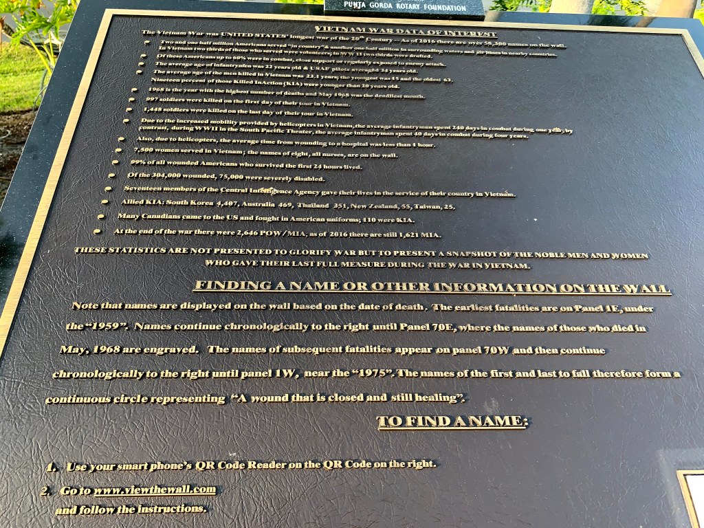Peter and I also visited the Military Heritage Museum that was recently renovated. We enjoyed the various exhibits and were surprised at the number of local volunteer veterans serving as docents. We have heard that many towns are veteran/military friendly and Punta Gorda appears to be one of these. Punta Gorda is proud to be home to a replica of the Vietnam Wall in Washington D.C. The Vietnam Wall of Southwest Florida is located in Laishley Park and is about half the size of the one in D.C.