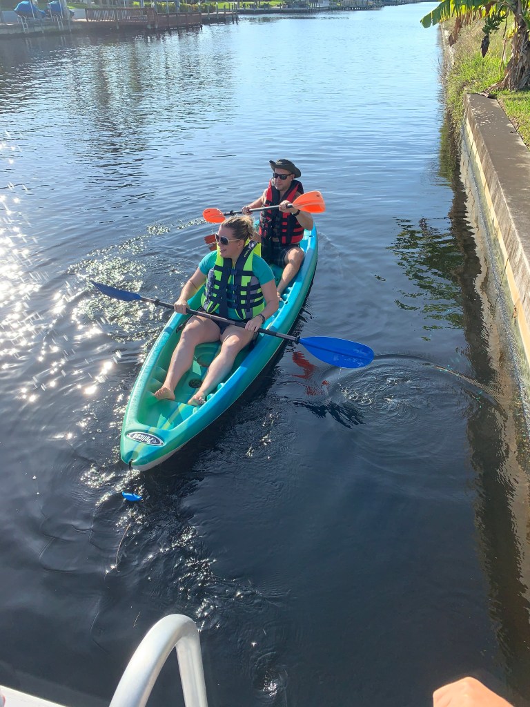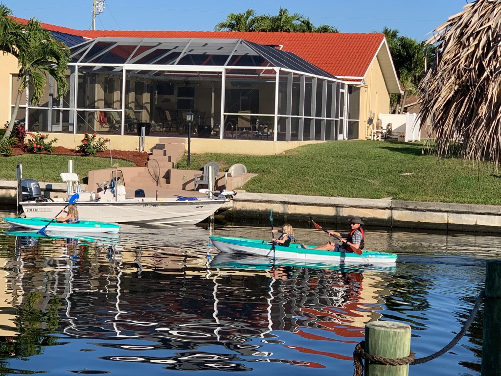In addition to this holiday function, our son and daughter-in-law rented a house in Cape Coral from 12/28-1/4 so we were able to spend time with our family for the holidays. When they initially rented the house they were told that it was pet friendly (Kodey could stay!) and there was a dock out back where we could dock the boat for the week. Of course the owners never mentioned all the low bridges in Cape Coral and the clearances – even the highest vertical clearance in all of Cape Coral would not be high enough for us so we left the boat in Fort Myers and stayed at the house. Fortunately, we found out about the bridge clearances early on after they rented so this was not a surprise. The house was equipped with a pool and hot tub, and two kayaks for use on the canal out back. It was strange to be staying in a house with no “rocking” for the week. Access to the use of a full kitchen and large bath facilities was a pleasure. We spent the week enjoying family and participating in typical tourist activities – exploring downtown Fort Myers, enjoying the holiday lights and museum at the Edison Ford Winter Estates, shelling on Sanibel, a trip to Manatee Park where few were visible, a dolphin tour with only a glimpse of a dolphin, walking through Six Mile Cypress Slough Preserve, visiting IMAG History & Science Center, and a visit to the Shell Factory and Nature Park. We had a great time over the holidays with family.