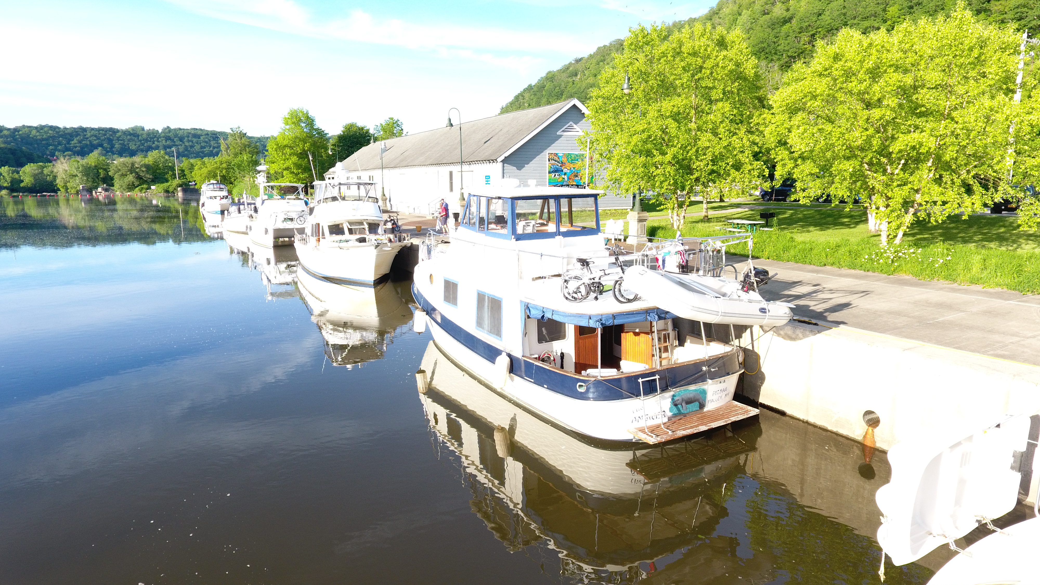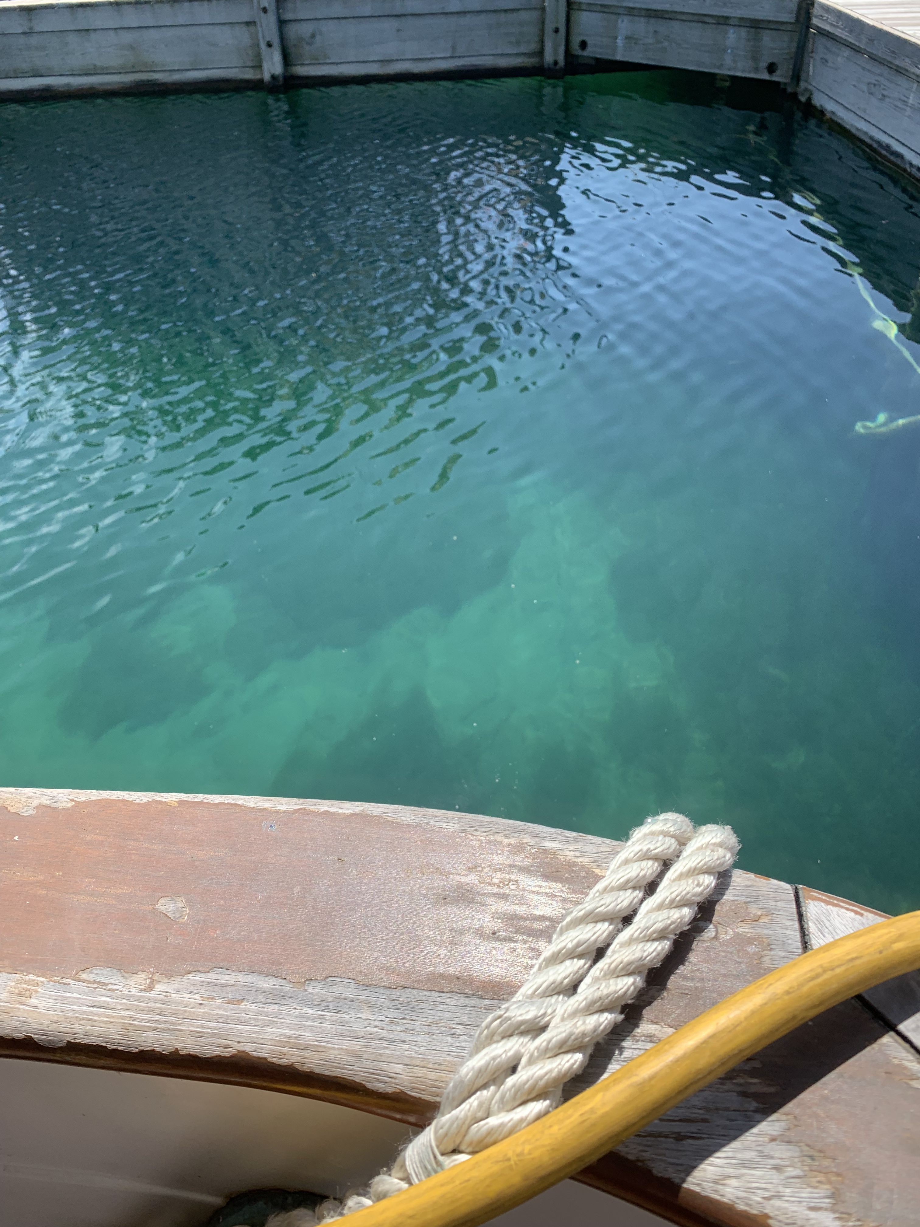 Since I have commented on the color of the water compared to the Hudson River, I have posted a few photos from when we docked today – it’s amazing to be able to see below the water right in your slip! Another thing that we found unusual – not a common occurrence in NY – is docking bow first. Everybody seems to do it, but not us!