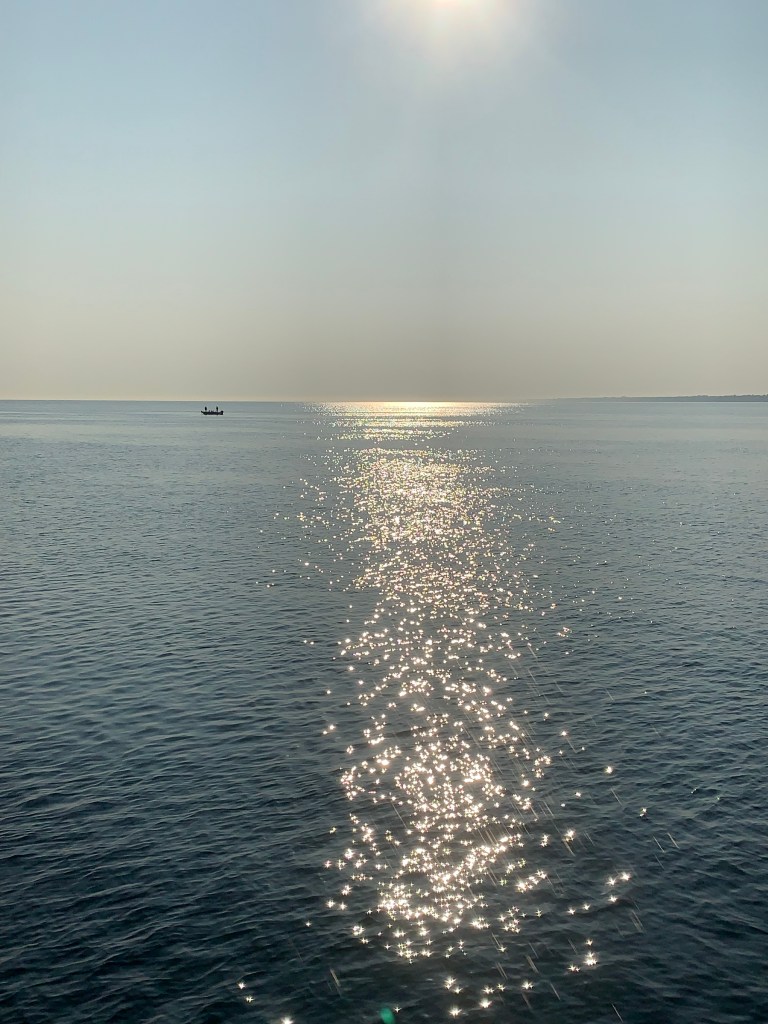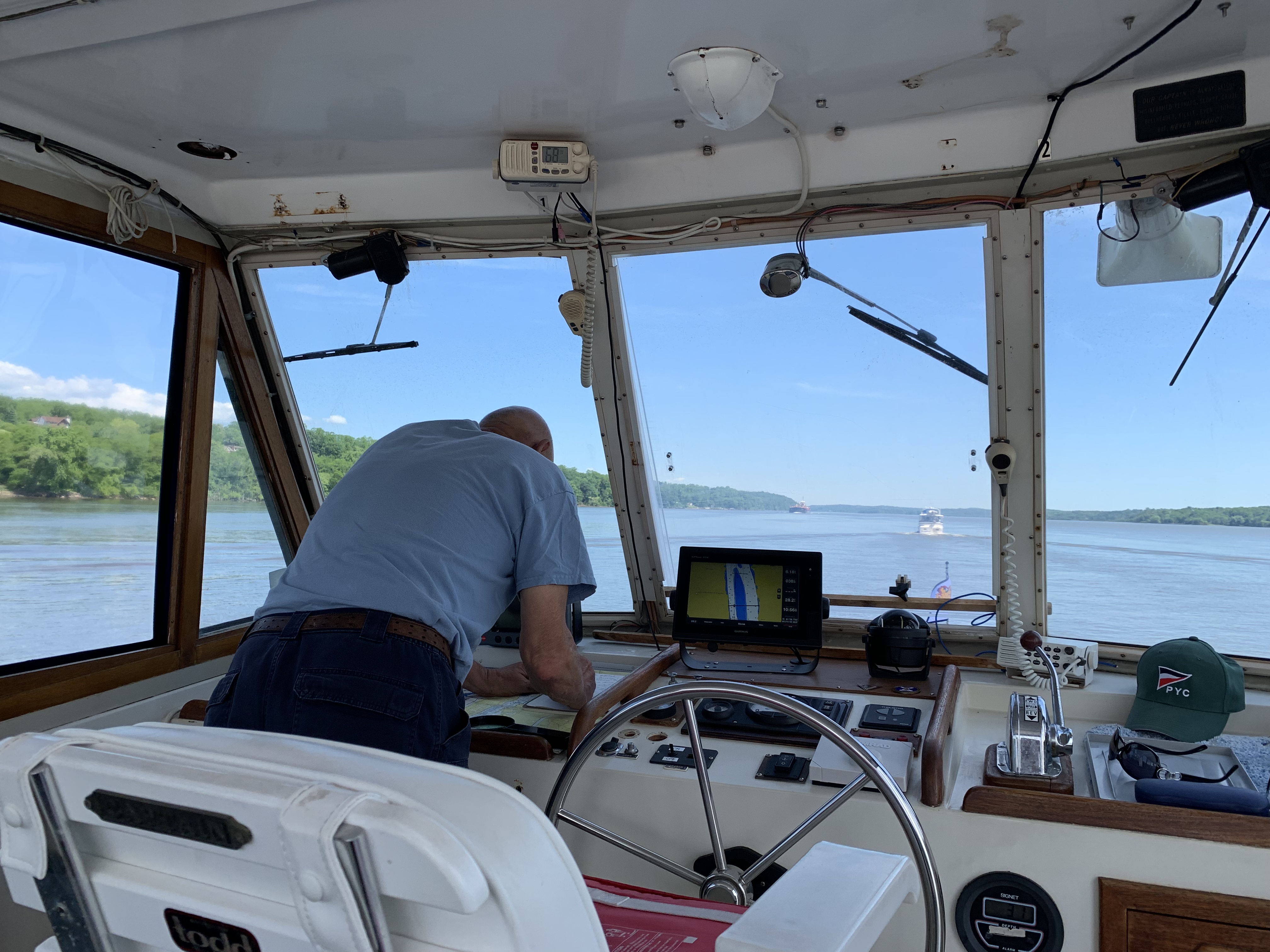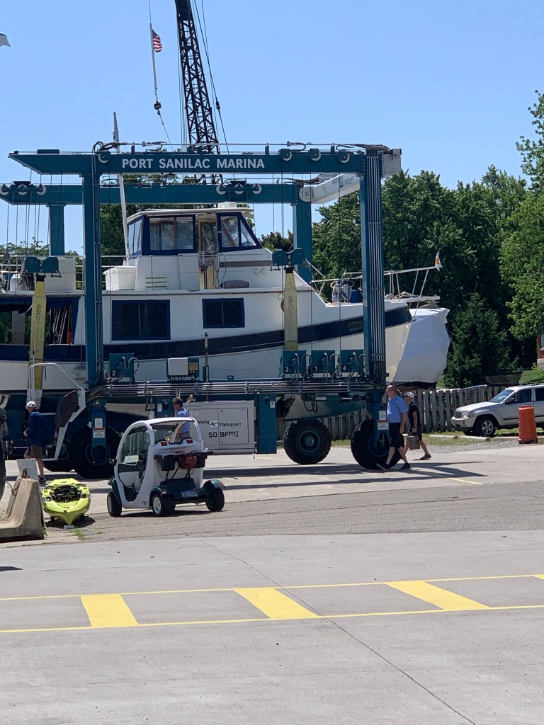 Saturday arrived with good weather and nominal winds, at least at the beginning of our journey. Peter is still having difficulty walking but there is nothing that would keep him from leaving Port Sanilac and running the boat. We arrived in Port Austin with no problems – a bit windy at times but still doable. He ran the boat at varying speeds to continue to test outcomes – all good! We would like to catch up to a few people we had been traveling with earlier on the trip and they are at varying days ahead of us. It is doubtful that we will catch up until sometime next week but that is assuming the weather/winds cooperate. While Port Austin looks like an interesting town to stay another day, Peter is not only anxious to leave and is not really capable of walking around town anyway. Next stop will be cutting across the mouth of Saginaw Bay to Harrisville, MI. This will be the first time that we will be totally out of sight of land.