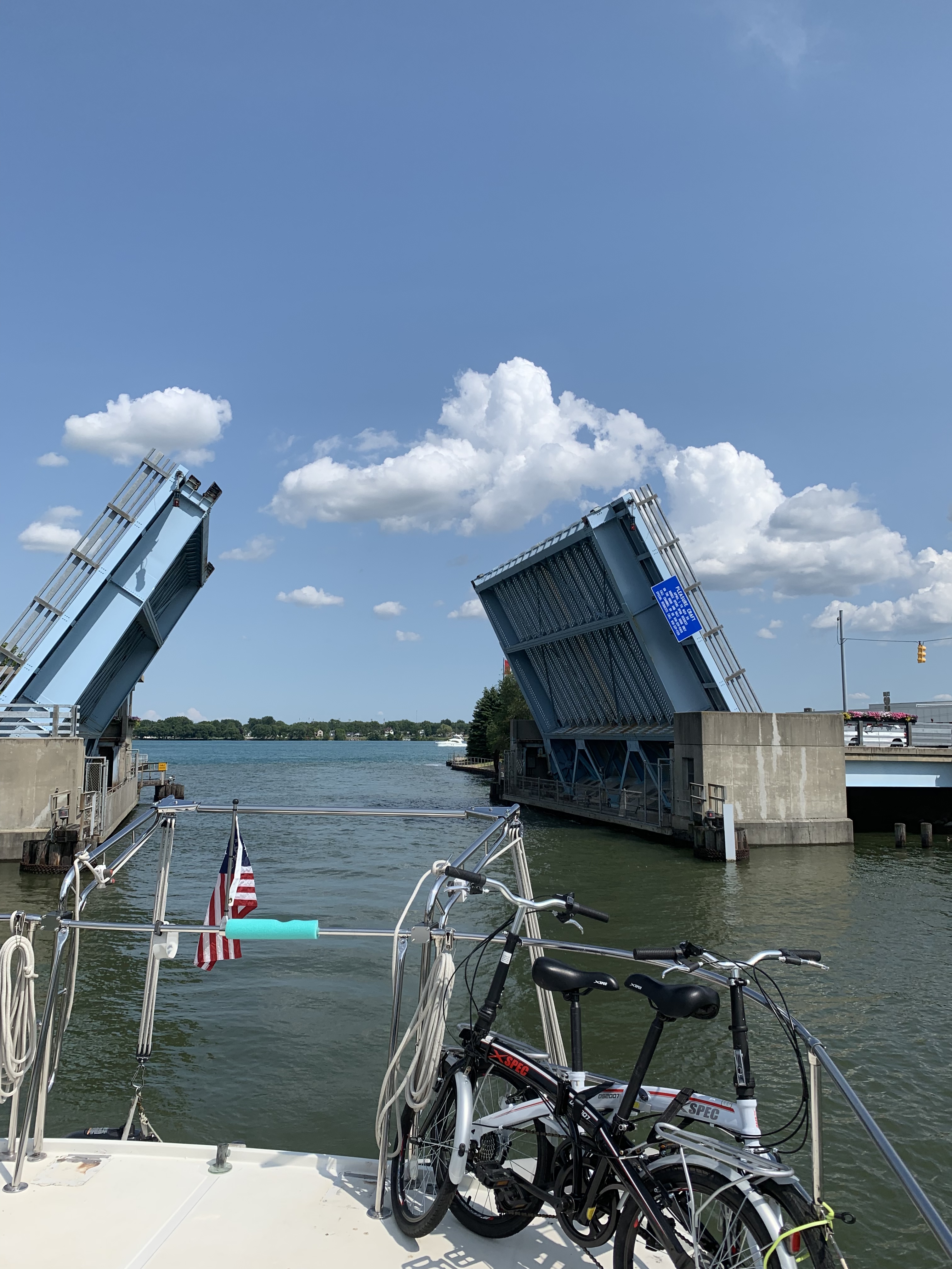 We planned to travel on Monday since the winds did not look like they were going to cooperate on Tuesday so wanted to make the most of the water before we got stuck. We decided to stay another night in Rogers City and I took advantage of the time to locate an urgent care type facility for Peter to see a doctor. If the weather continued to be nice, he would want to keep traveling and eventually, he wouldn’t be able to walk at all. We were able to make an appointment for Tuesday morning. The marina had a courtesy vehicle so we were able to get a ride since we have found that Uber does not seem to exist in this part of Michigan and Lyft is spotty. Turns out that his sciatic nerve is pinched – they gave him a shot and steroids and pain medication. Wednesday, he was better already – still not great but moving much easier. So, of course we traveled and arrived at Mackinaw City. We have traveled over 200 miles since we left on Saturday without issue. On our next stop, we will be in Lake Michigan.